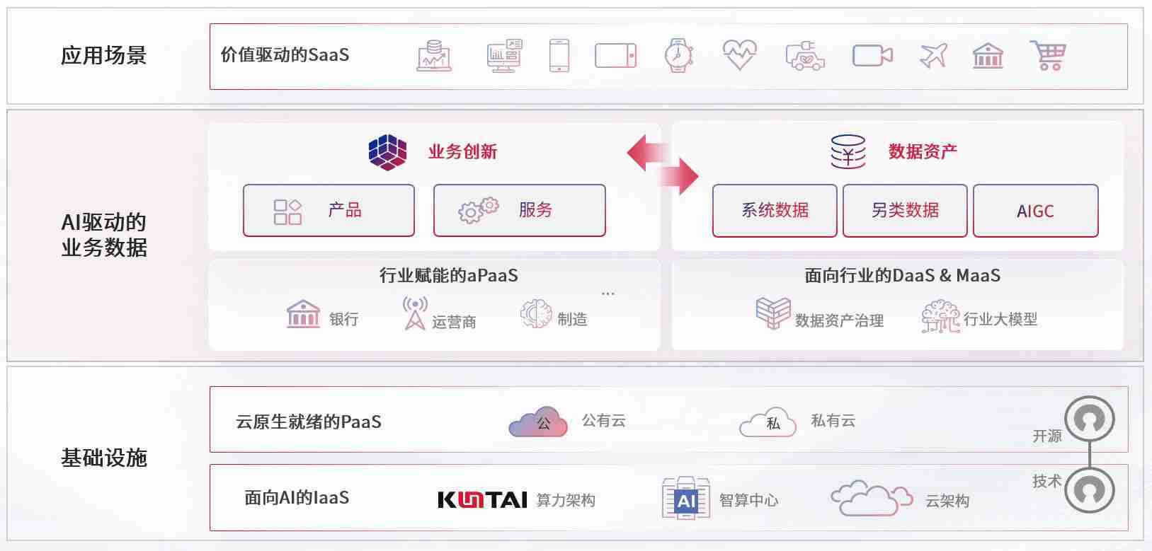 数字时代,,,,围绕企业数字化转型的关键要素,,z6尊龙数码开创性的提出数云融合战略和技术体系框架,,,着力在云原生、、数字原生、、、AI原生和信创产业上架构产品和服务能力,,,为处在不同数字化转型阶段的快消零售、、汽车、、、金融、、、、医疗、、、政企、、教育、、运营商等行业客户提供泛在的敏捷IT能力和融合的数据驱动能力,,,构建跨界融合创新的数字业务场景和新业务模式,,,助力企业级客户建立面向未来的核心能力和竞争优势,,全面推动社会的数字化、、智能化转型升级。。。。